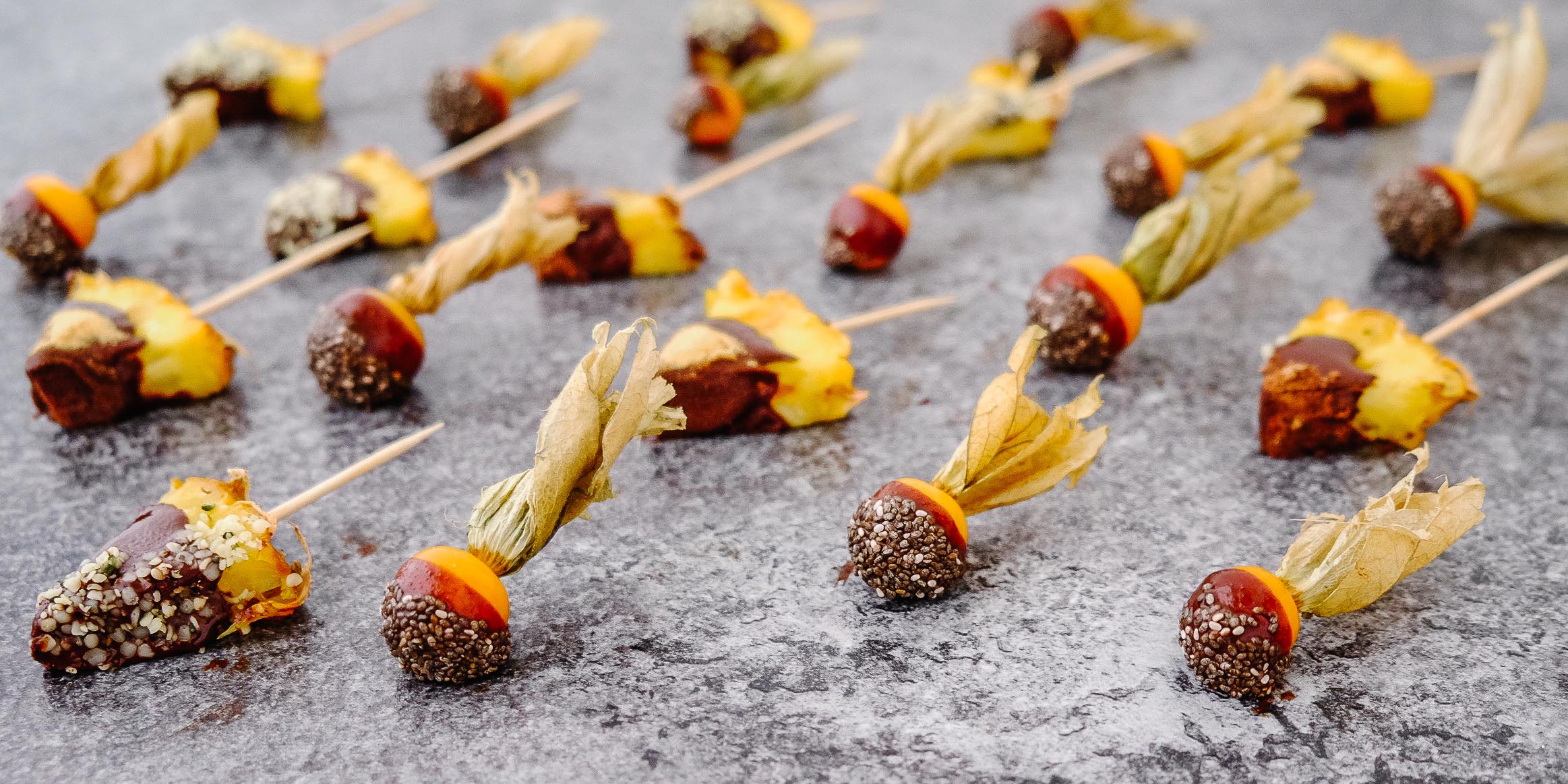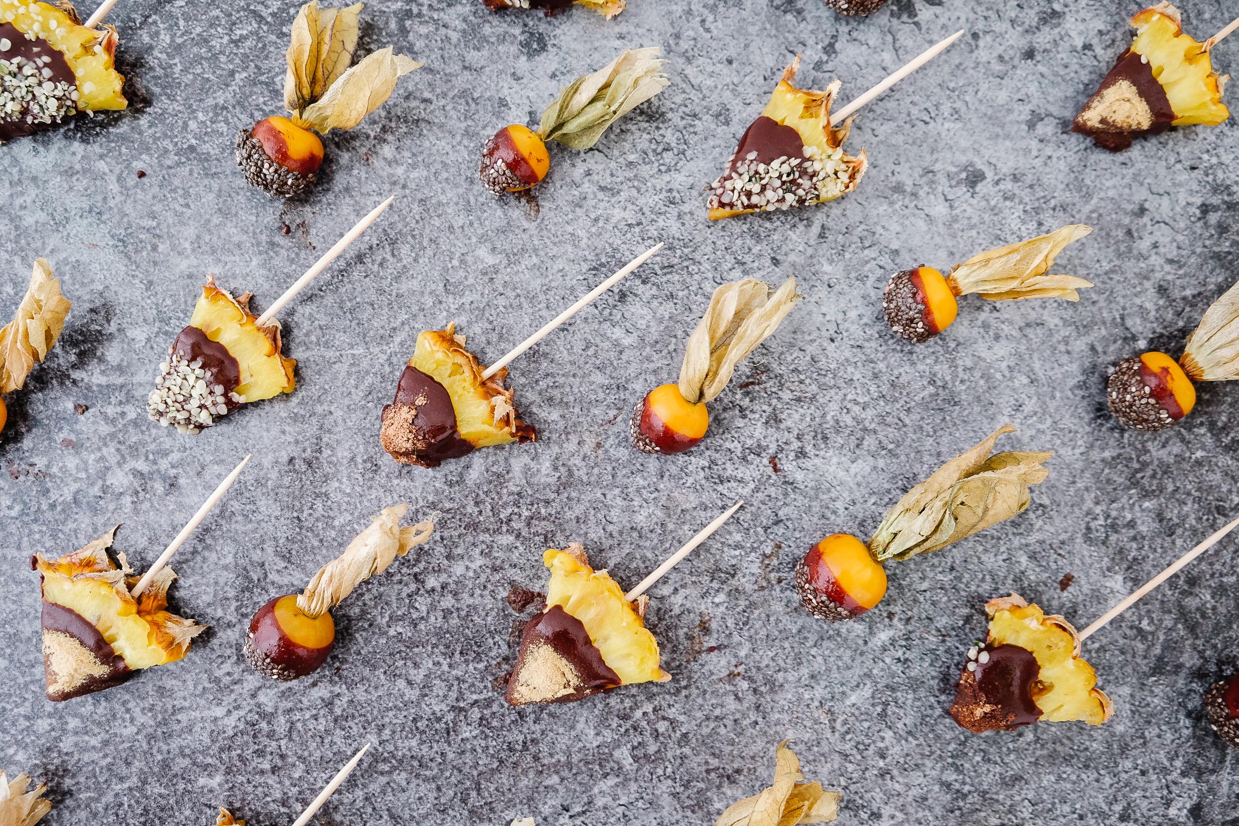 I created a recipe for fruits with homemade chocolate and superfood topping using the raw cocoa powder, the hemp seeds, raspberry powder and chia seeds in order to showcase how versatile the products are and how to combine them best.